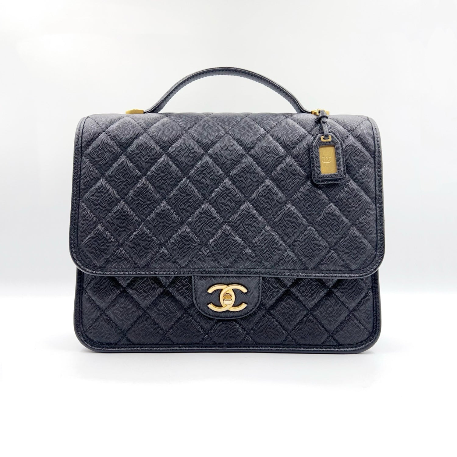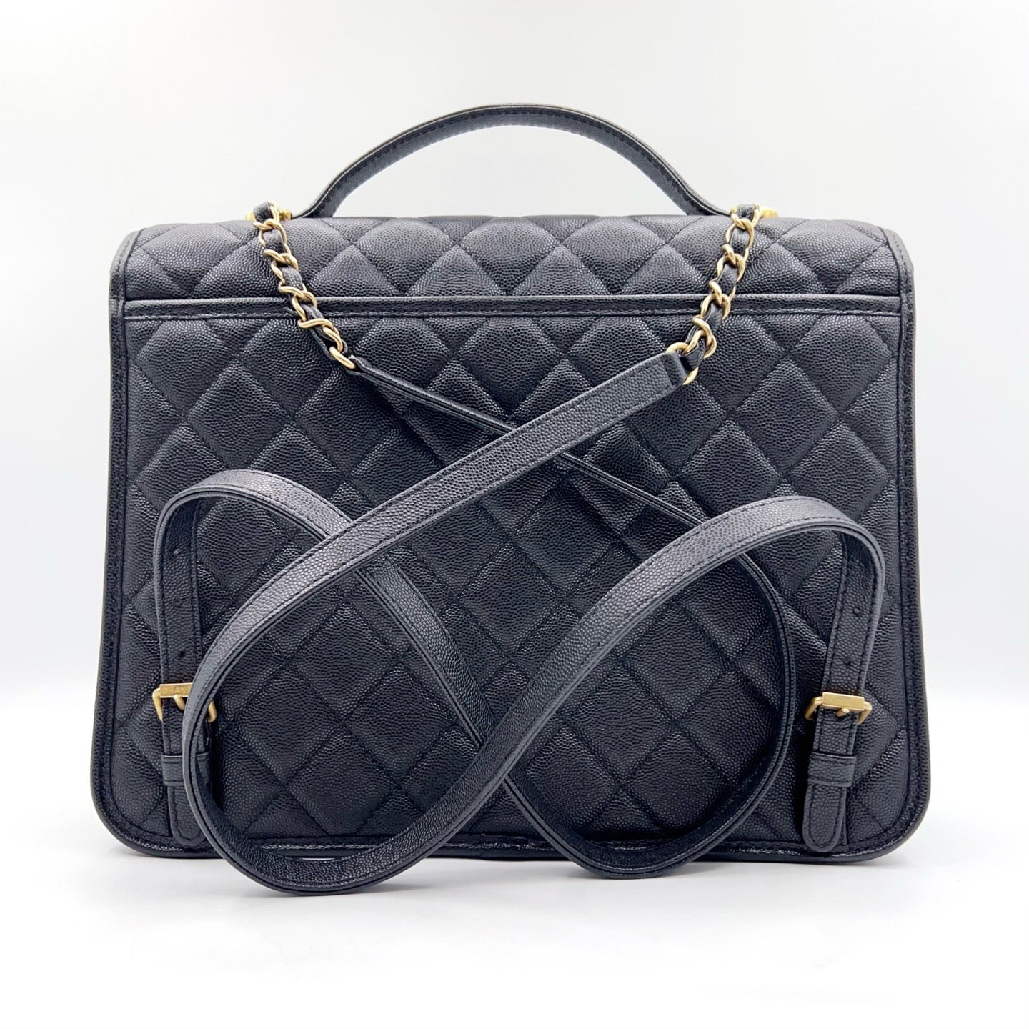 Preloved Chanel Black n Gold 22k Large School Memory Backpack With Tag