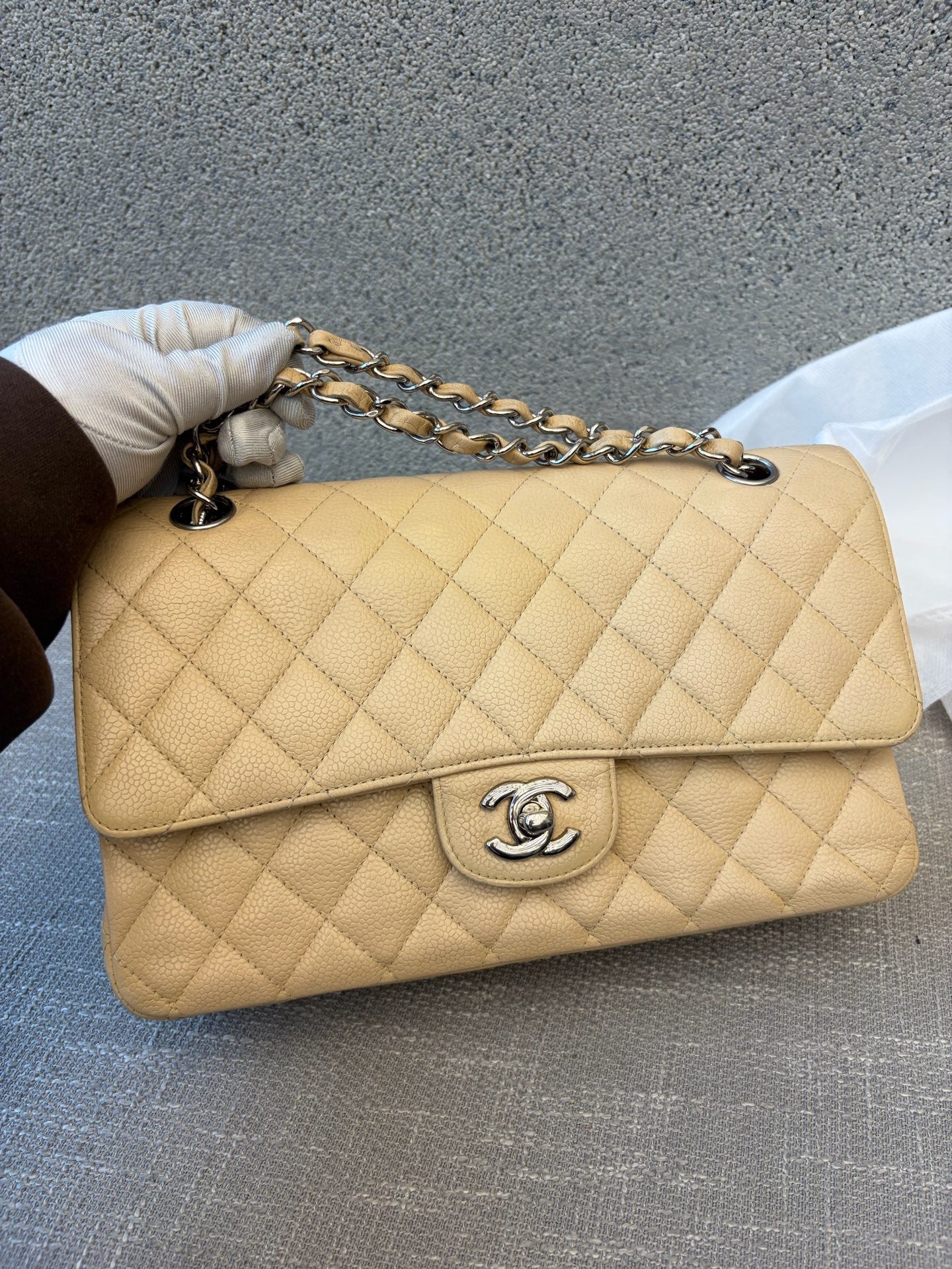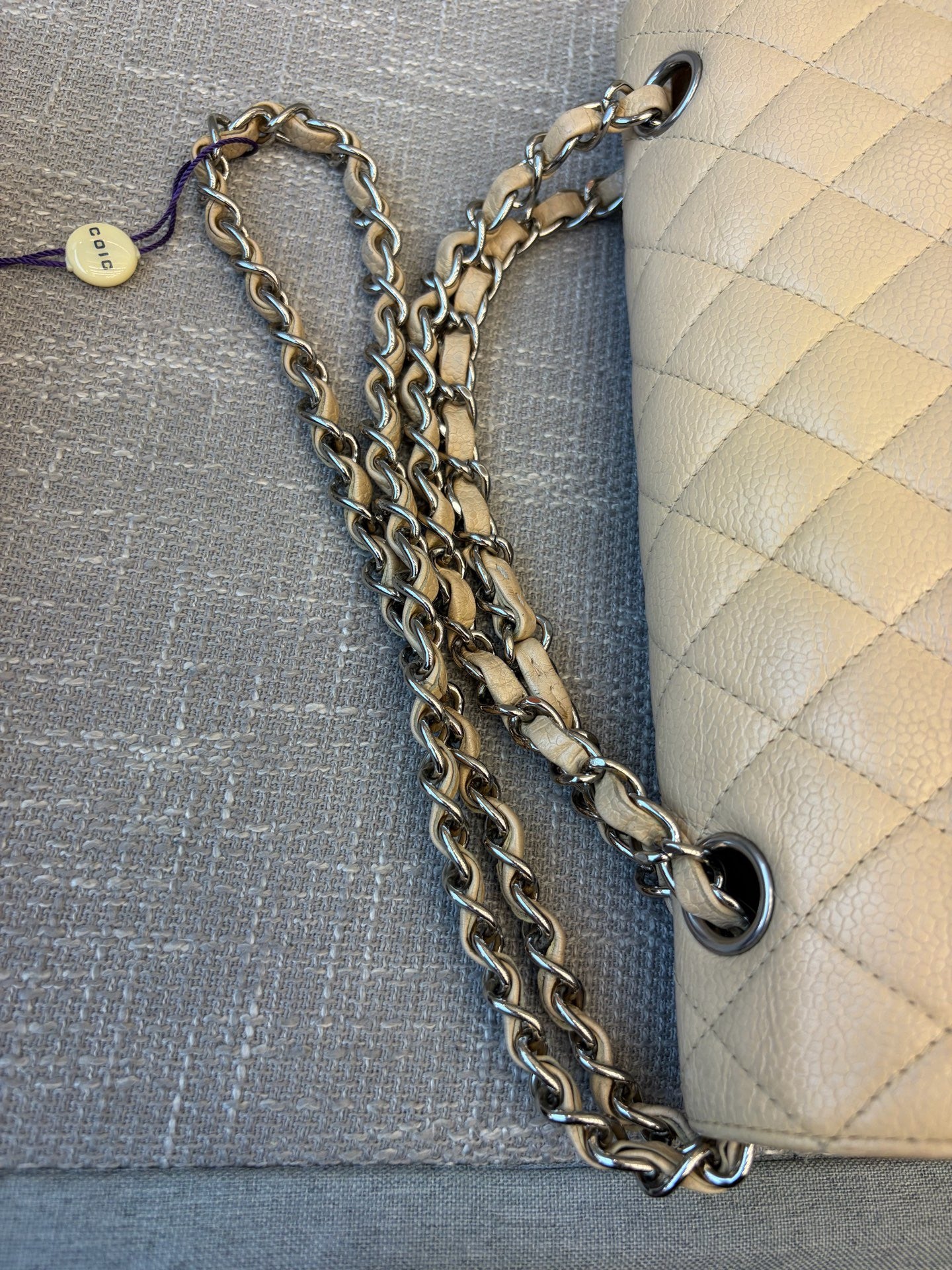 Color : Beige with silver-tone hardware