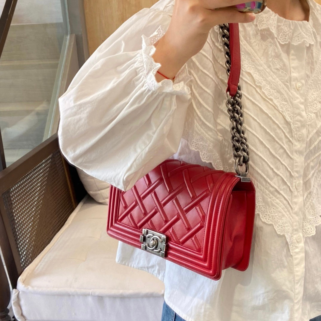 Color : Red with silver-tone hardware