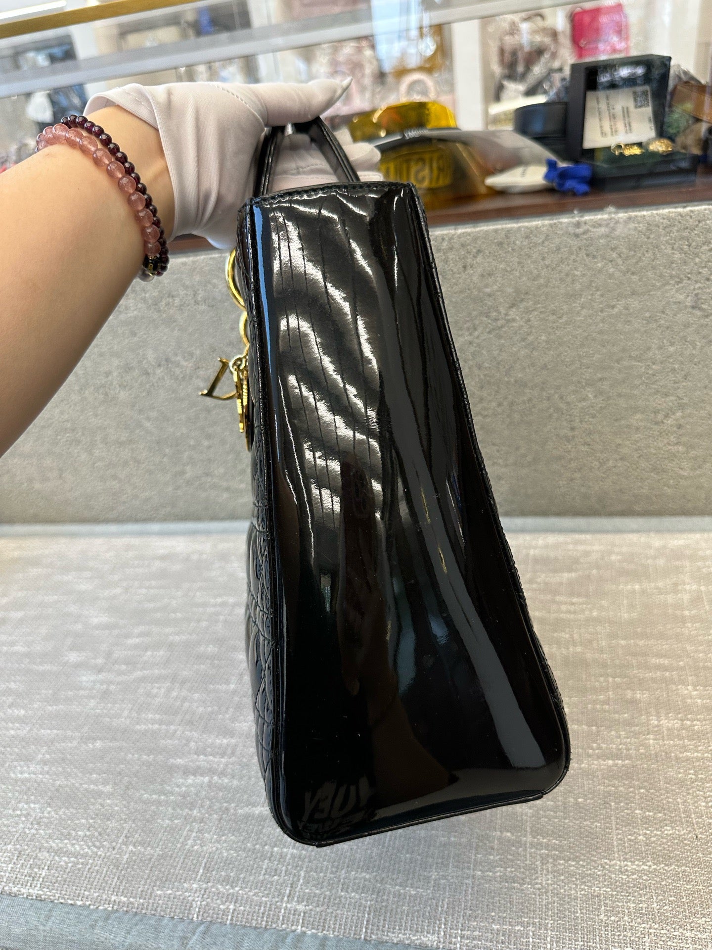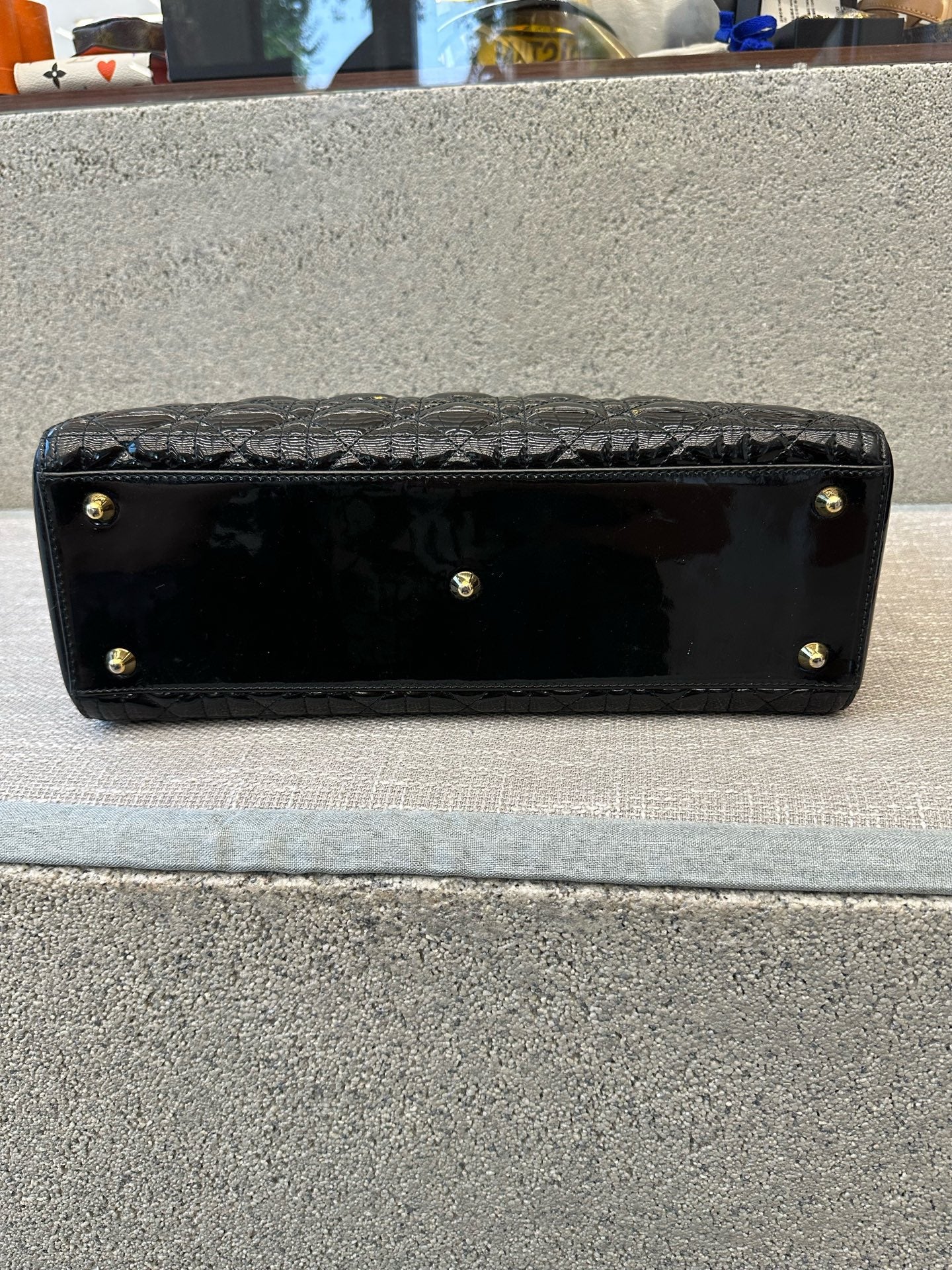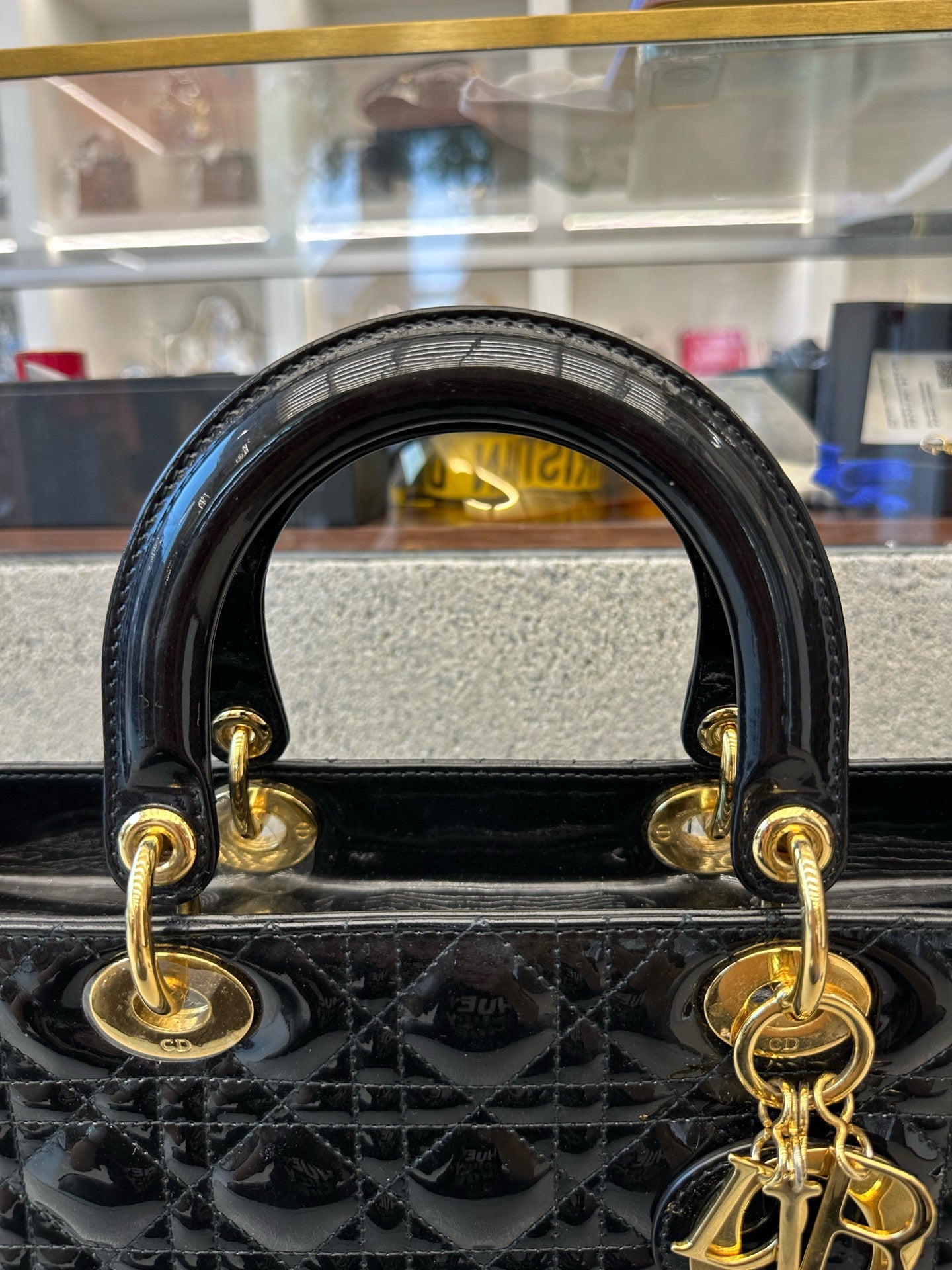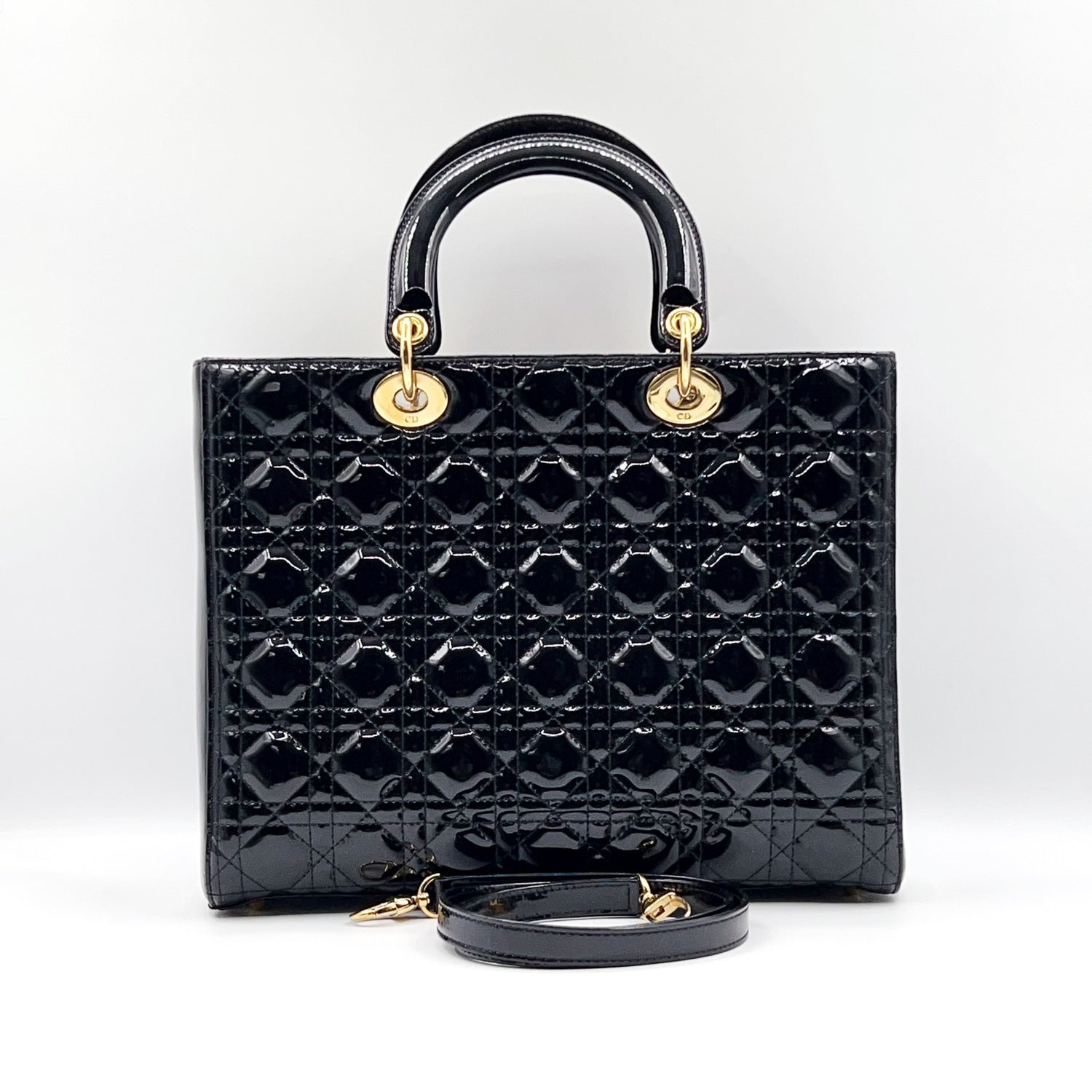 Preloved Christian Dior Black n Gold Lady Dior Large